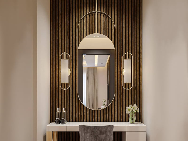 Gương trang điểm treo tườngGương Trang Điểm Treo Tường Khung Inox Mạ Vàng Dehome DPVD69.2E