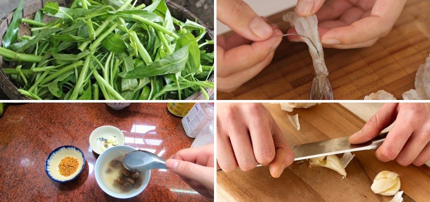 Chuẩn bị nguyên liệu món rau muống nấu canh chua cho 3 – 4 người
